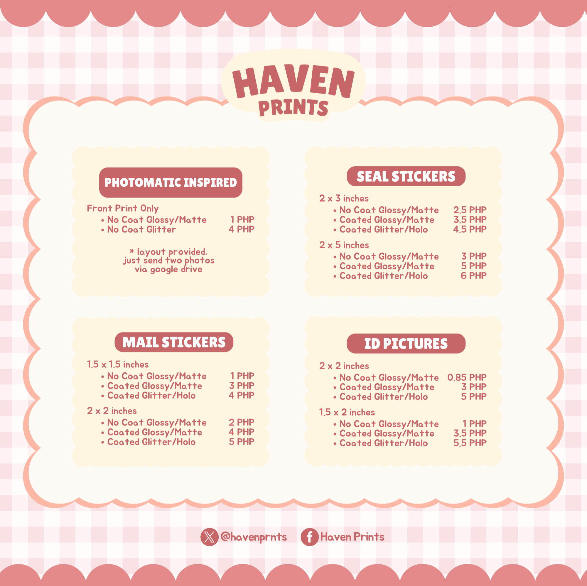 - I have zero tolerance to rude customers and those who do not respect my time outside of working hours (9 AM - 3 PM, Monday - Friday), I handle all the printing and cutting alone so being patient will be highly appreciated.